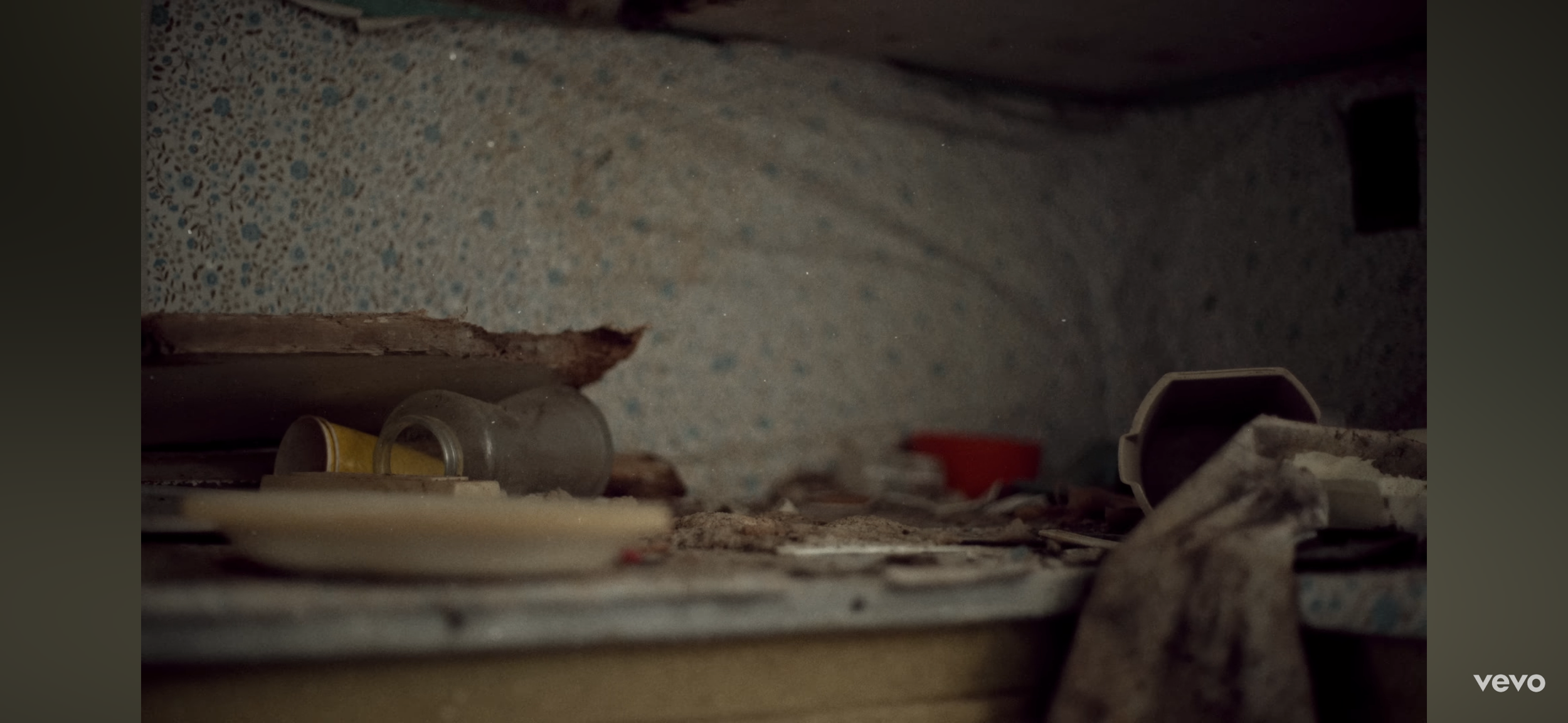 “Where’d It Go Wrong” by D4VD is a heartbreaking song about the failure of his relationship. D4VD wanted to capture a burnt and abandoned house and to convey that I created a overgrown, burnt feel using scenic and greenery treatments inside and outside the house along with hand dyed ash and movie dust.